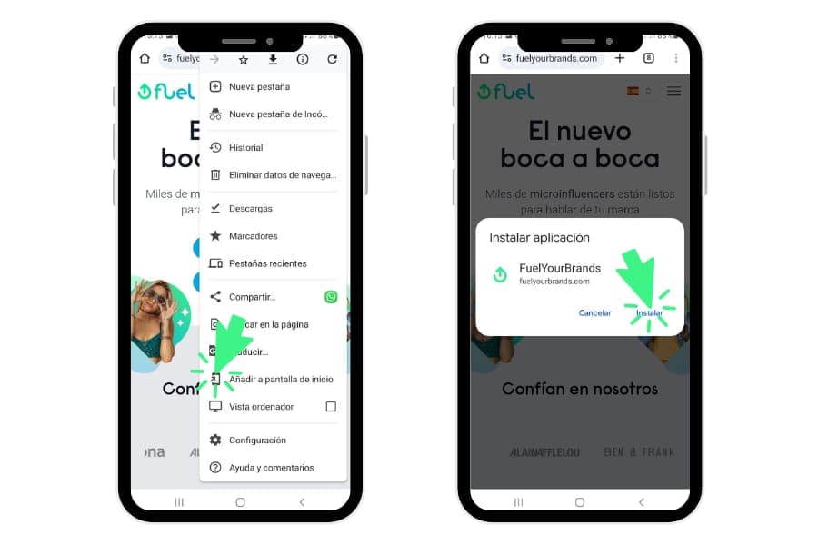 - Abre Google Chrome en tu teléfono y busca fuelyourbrands.com